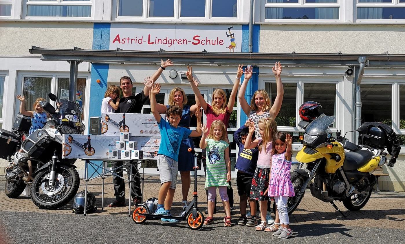 Nun konnten die großzügigen Spenden an die Einrichtungen übergeben werden. Während sich die Kindertagesstätte über neue Lautsprecher freut, können die Kinder der A-L-S im Sportunterricht und in den Pausen ab sofort auf mehrere Cityroller zurückgreifen.