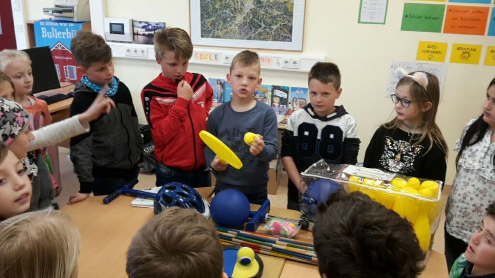 So konnten die Klassensprecherinnen und -sprecher der Klassen 2 bis 4 darüber entscheiden, was mit einem gewonnenen Preisgeld in Höhe von 250 € angeschafft werden soll. In den Klassen sammelten sie Vorschläge, die im Schülerparlament zur Abstimmung kamen. So konnten sehr interessante Spiele für die Pausenspiel-Ausleihe gekauft werden. Der nächste Auftrag der Klassensprecher war es nun, ihre Klassen mit den besonderen Spielregeln bei der Nutzung der Geräte vertraut zu machen. 🙂