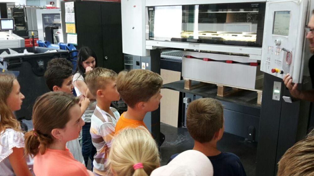 In sehr kindgerechter Weise erklärte Herr Kunze die Aufgaben einer Druckerei, sowie alle wichtigen Produktionsschritte. Dazu gab es auch einen kleinen musealen Ausflug, sowie einen Rundgang durch die verschiedenen Abteilungen der Druckerei. Beeindruckt waren die Kinder vor allem von der unglaublichen Geschwindigkeit, in der der eigentliche Druckvorgang vonstatten geht.