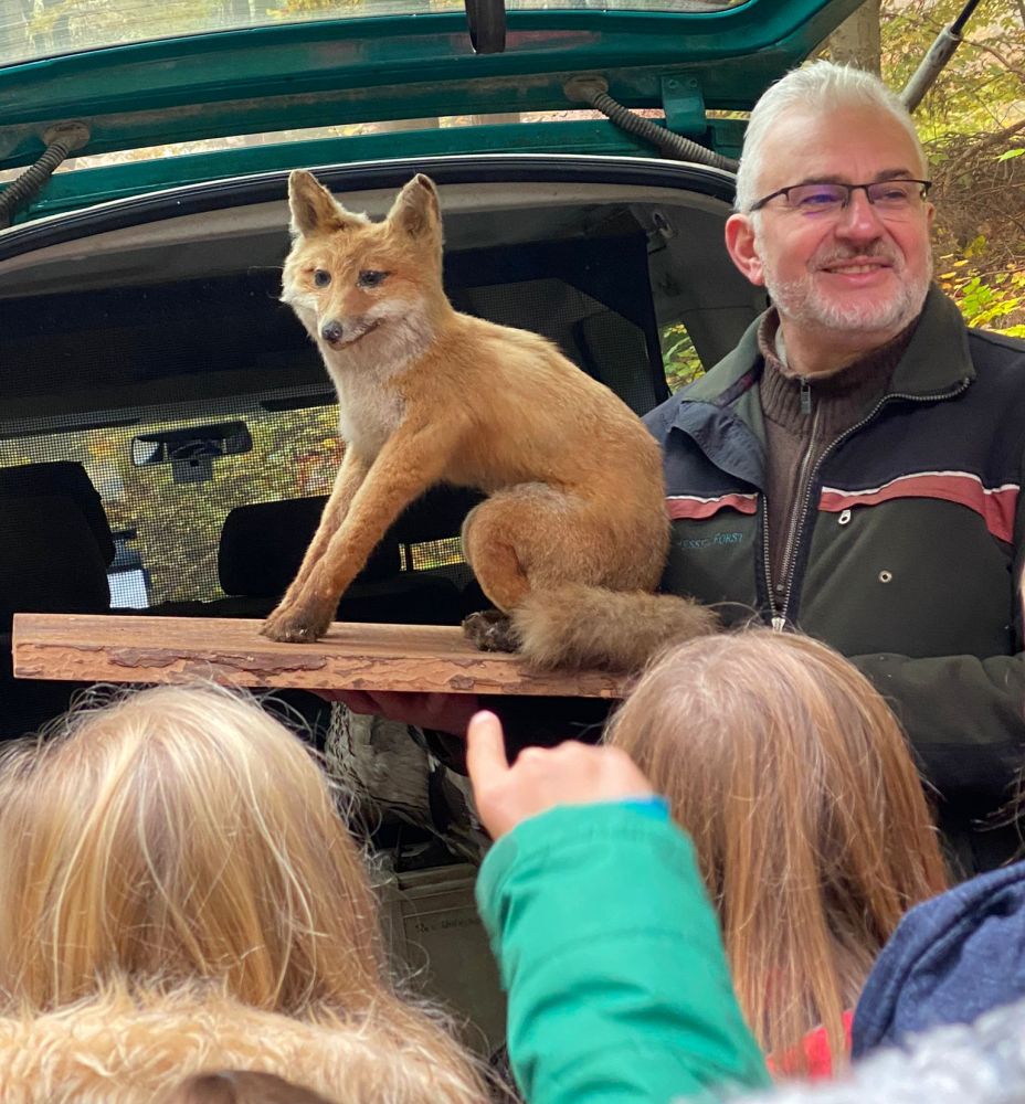 Die Viertklässler haben am 28.10.2021 gemeinsam mit ihren Klassenlehrerinnen Marion Edleditsch und Bärbel Ragotzky eine Waldexkursion durchgeführt. „Unser“ Förster Herr Mattes hatte spannende Dinge vorbereitet, sodass die Kinder viel Neues über den Wald und seine Bewohner kennenlernen konnten.