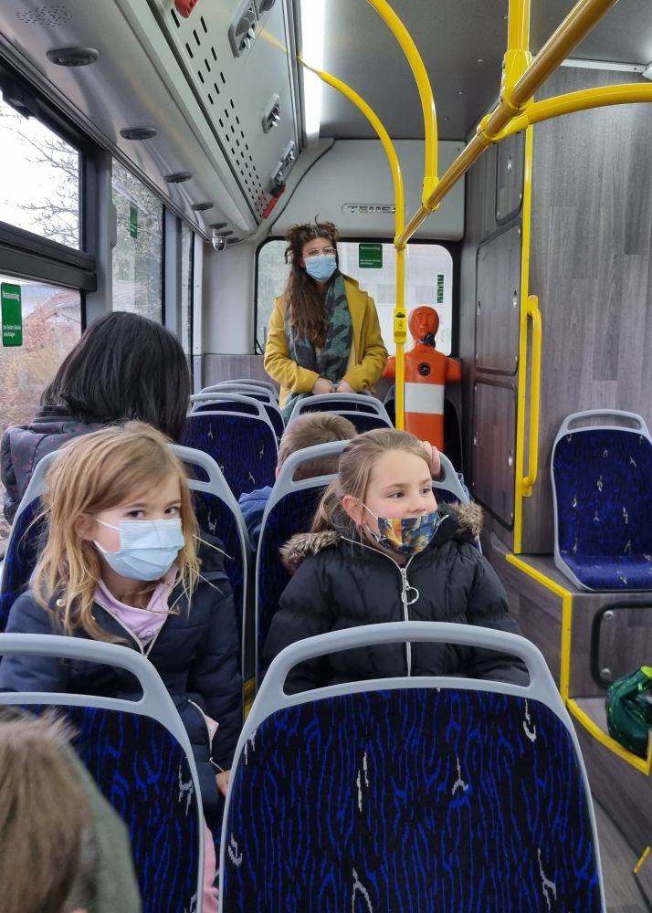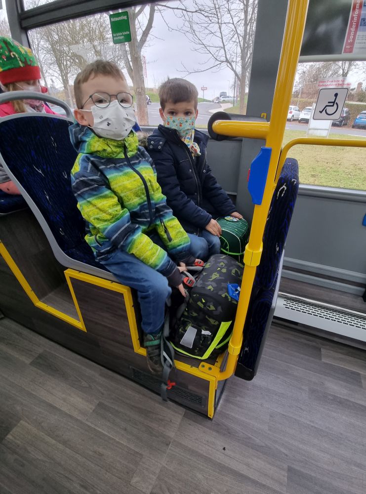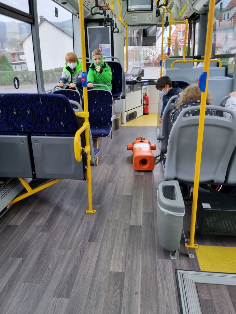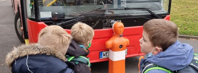 Heute hatten die Erstklässler jeweils zwei Stunden „Busschule“. Das ist eine Initiative des NVV, die die Kinder für das „richtige“ Busfahren sensibilisieren soll.