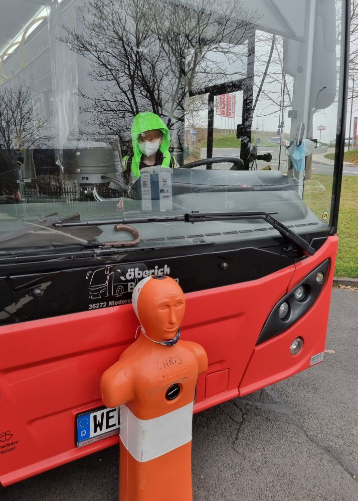 Höhepunkt war aber die Fahrt mit einem „richtigen“ Bus, bei der der Fahrer mehrmals starke Bremsungen durchführte, um den Kindern die Notwendigkeit klarzumachen, warum man sinnvollerweise einen Sitzplatz einnimmt und sich zusätzlich noch festhält. Und obwohl die Bremsungen bei einer Geschwindigkeit von höchstens 15km/h stattfanden, rutschte der Dummy „Chris“ von der hinteren Sitzreihe sehr geräuschvoll fast bis zum vorderen Einstieg! Unglaublich!