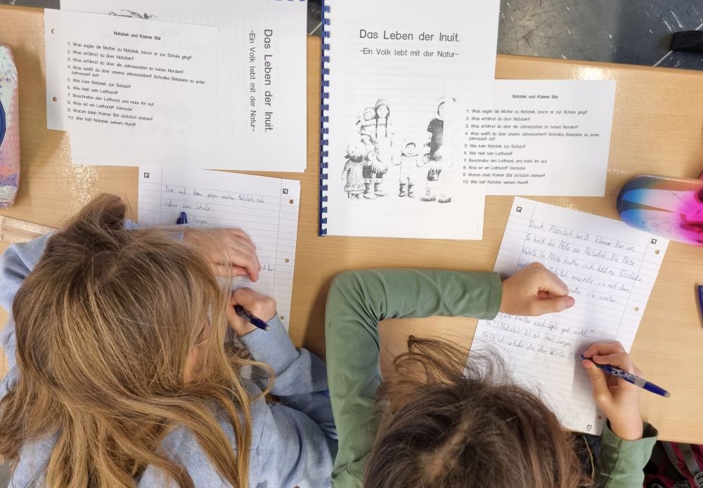 In diesem Jahr sind die Erstklässler in der Arktis unterwegs bei Lars, dem kleinen Eisbären. Die Kinder der Klasse 2a konnte man bereits zu Beginn der Woche auf dem Schulhof singen hören: „Michel war ein Lausejunge…“, während in der 2b verschiedenste Darstellungen von King-Kong, dem Geheimschwein entstanden. Eine Reise zu den Inuit unternehmen die Schülerinnen und Schüler der 3a. Nebenan in der 3b bevölkern etliche Drachen den Klassenraum, während die Kinder in dem Buch „Hanno malt sich einen Drachen“ lesen. Die Klasse 4a erlebt derzeit „Eine Woche voller Samstage“ und die 4b widmet sich dem Astrid-Lindgren-Klassiker „Ronja Räubertochter“. So schön und vielfältig kann Schule sein! 🙂