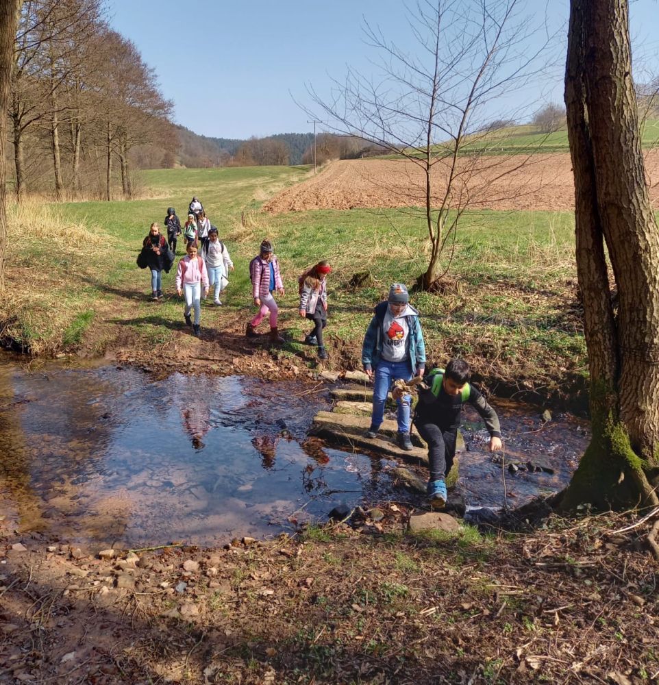 Wir sind heute Morgen zuerst nach Rotensee gelaufen. Nachdem wir uns kleine Lämmchen angeschaut hatten, waren wir am Spielplatz. Von dort ging es über einen wunderschönen Waldweg über einen Bach nach Fischbach. Unterwegs sahen wir Zitronenfalter, ein Tagpfauenauge, „kleine Füchse“ (Schmetterlinge), viele Frühlingsblumen (Huflattich, Scharbockskraut), Goldammern und die erste Bachstelze. Nachdem Marlon uns in Bodes seine Ziegen, Hühner und Laufenten gezeigt hatte, waren wir am Spielplatz. Zum Schluss fuhren wir mit dem Bus zurück zur Schule. Welch ein wunderschöner Wandertag bei bestem Wetter und mit bester Laune! 🙂