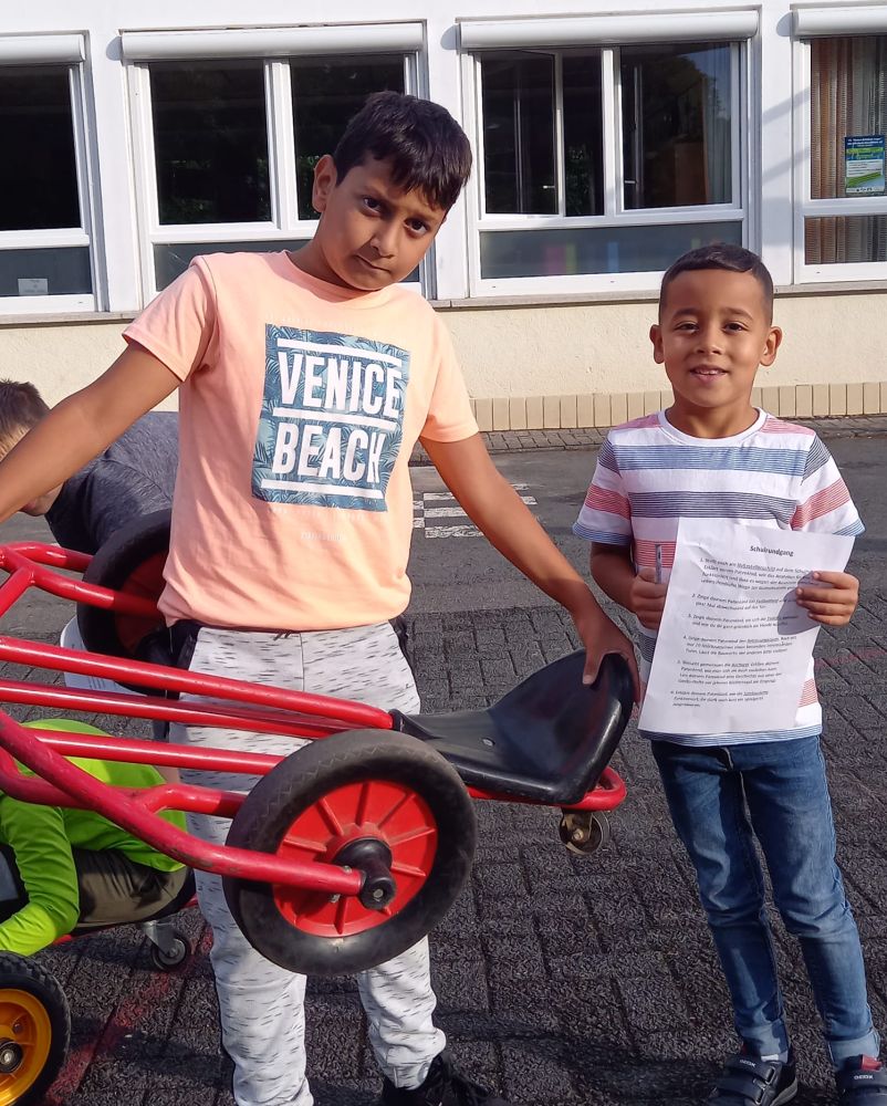 Die Kinder aus unseren beiden ersten Klassen haben schon einige Kennenlerntermine mit ihren Paten aus den vierten Klassen gehabt. Bei einem gemeinsamen Schulrundgang führten die Erstklässler*innen mit ihren Paten verschiedene Aktionen in den Räumen der Schule durch, um sich von Anfang an gut zurechtzufinden.
