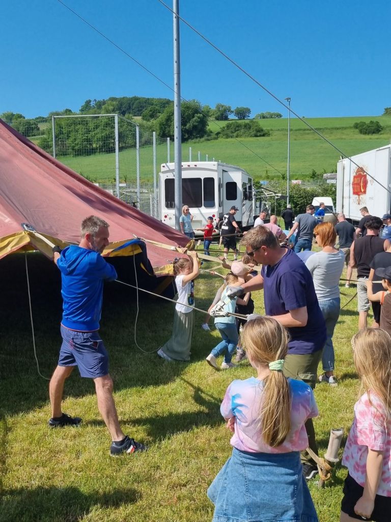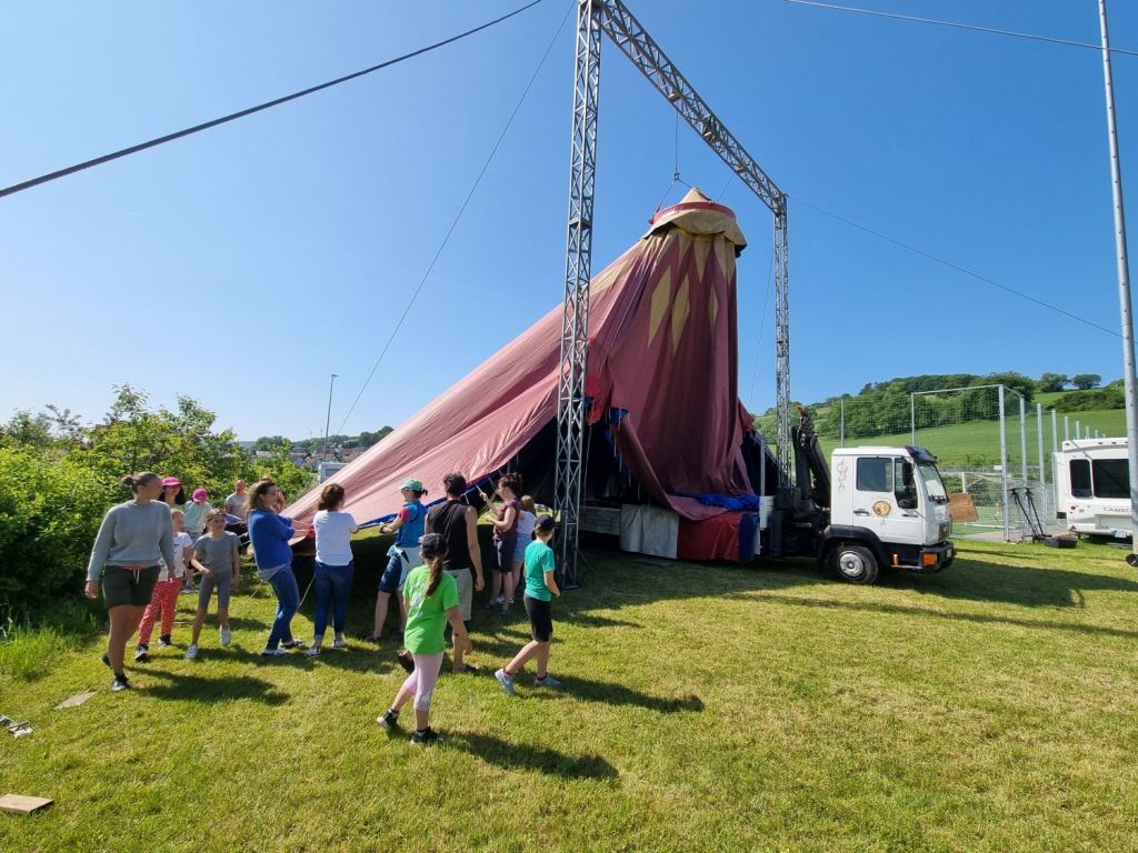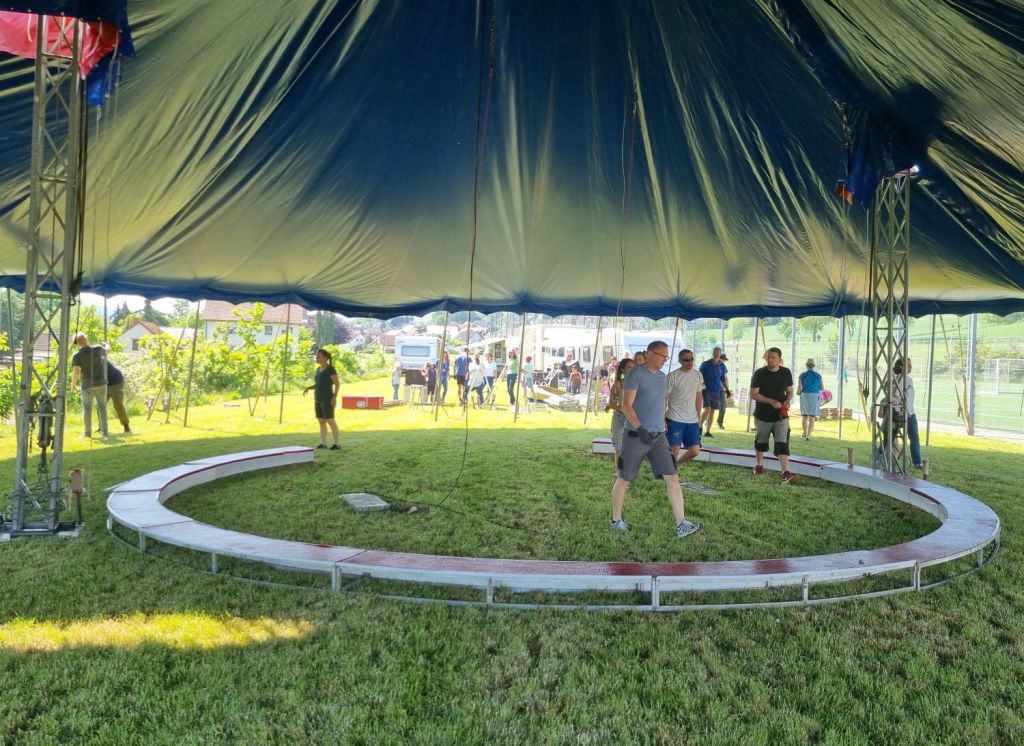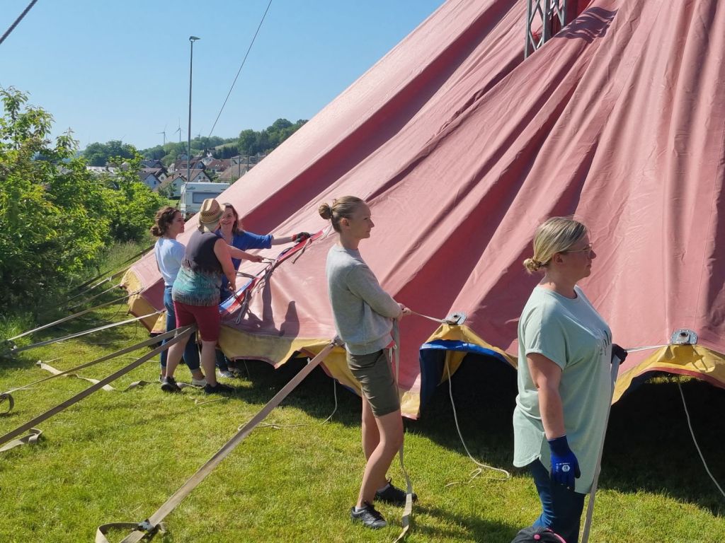 In der Rekordzeit von einer Stunde und 30 Minuten haben wir mit vereinten Kräften das Zirkuszelt aufgestellt!