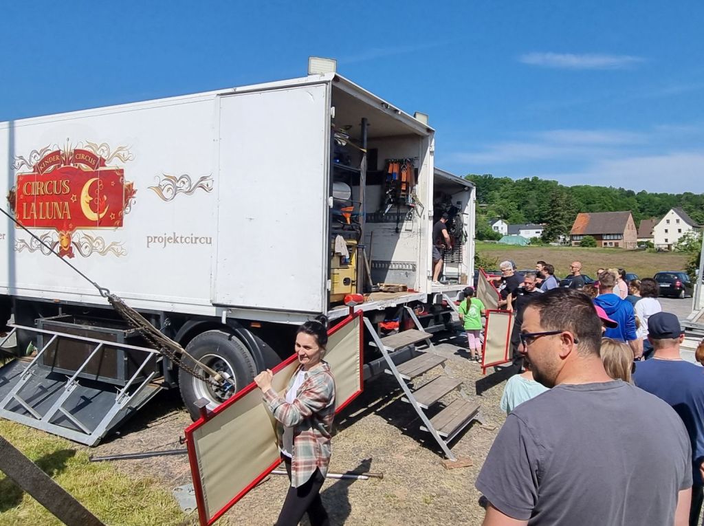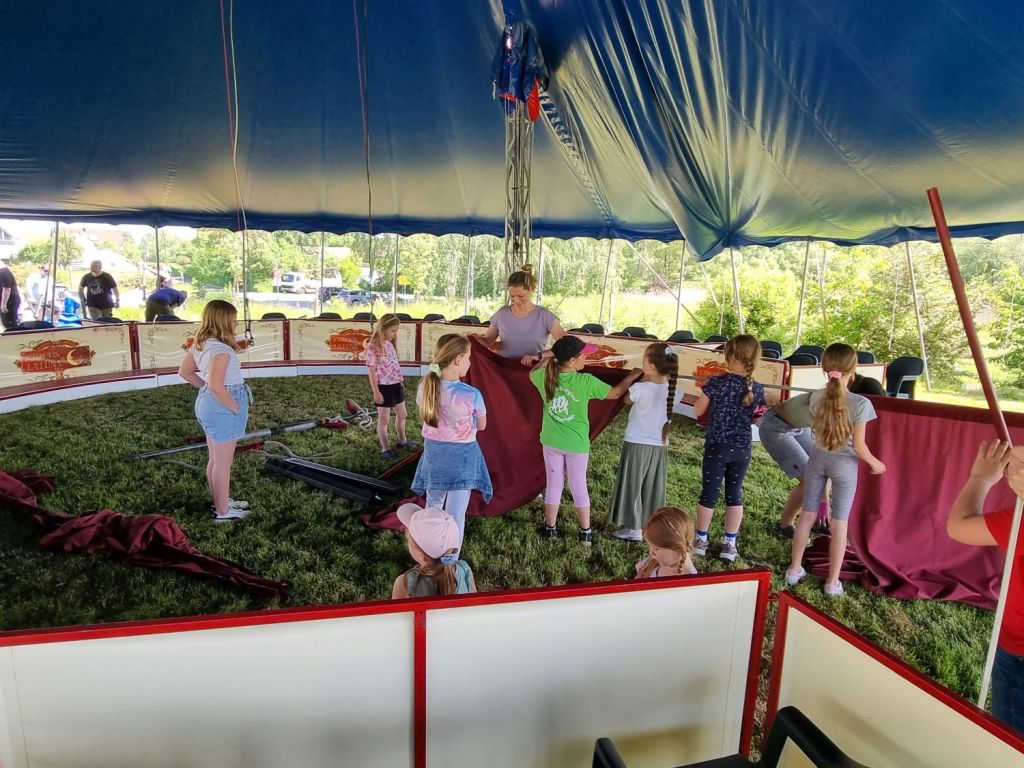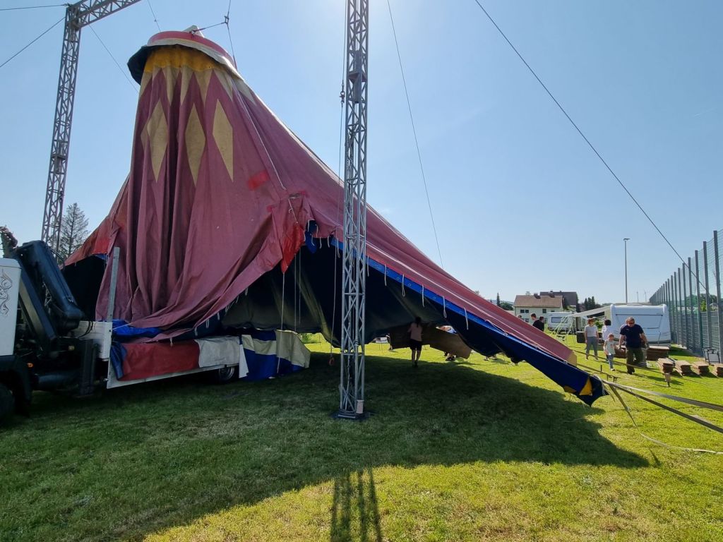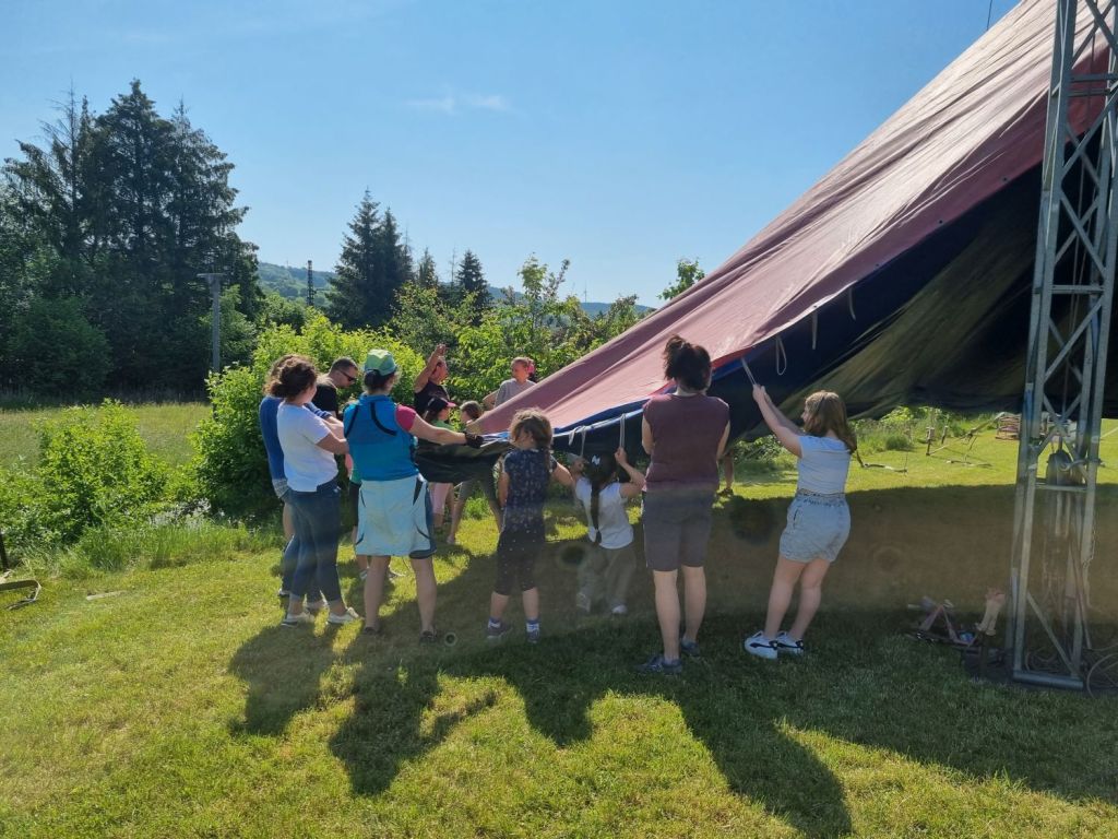 In der Rekordzeit von einer Stunde und 30 Minuten haben wir mit vereinten Kräften das Zirkuszelt aufgestellt!