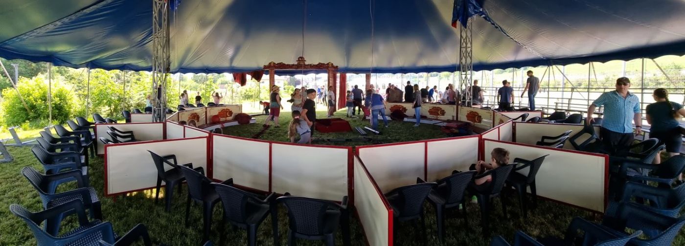 In der Rekordzeit von einer Stunde und 30 Minuten haben wir mit vereinten Kräften das Zirkuszelt aufgestellt!