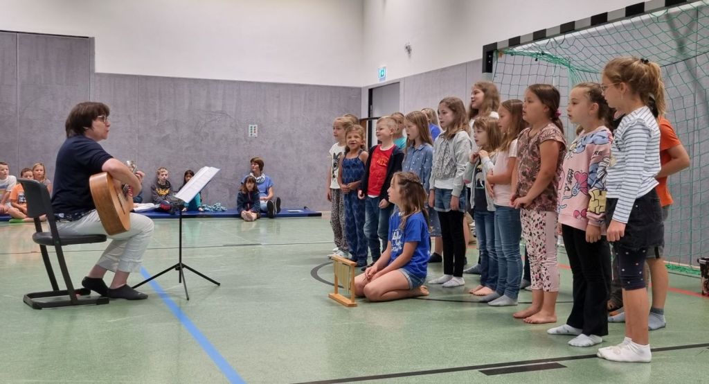Der Schulchor unter der Leitung von Bärbel Ragotzky hatte sich zwei sehr kurzweilige Liedbeiträge überlegt.