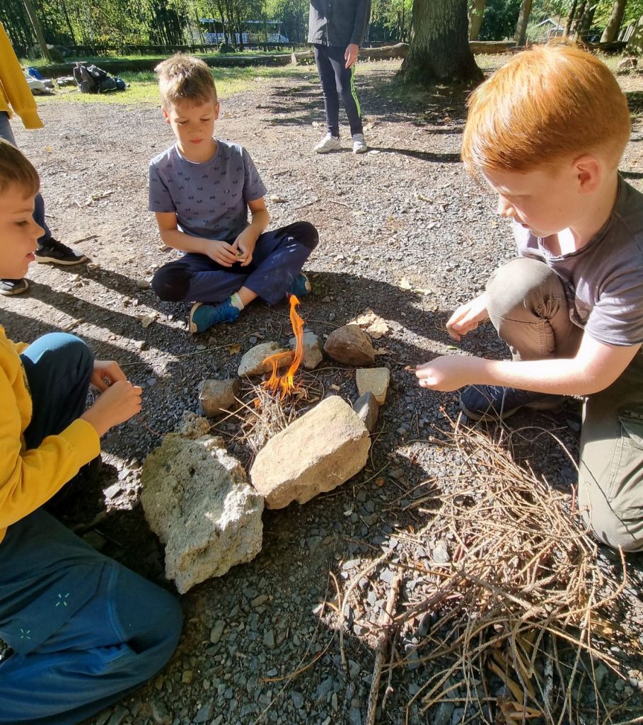 Wie kann man mit Naturmaterialien ein Feuer zum Brennen bringen?