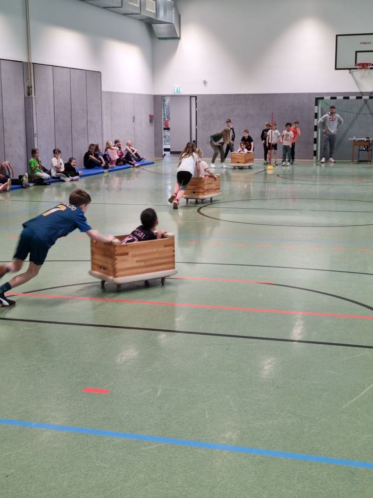 Den krönenden Abschluss bildete das Bobfahren, das gemeinsam mit der gesamten Schulgemeinde zelebriert wurde. In vier packenden Rennen fuhren jeweils die Mannschaften der Parallelklassen gegeneinander. Bei großartiger Stimmung gaben alle Teams ihr Bestes! Gratulation!