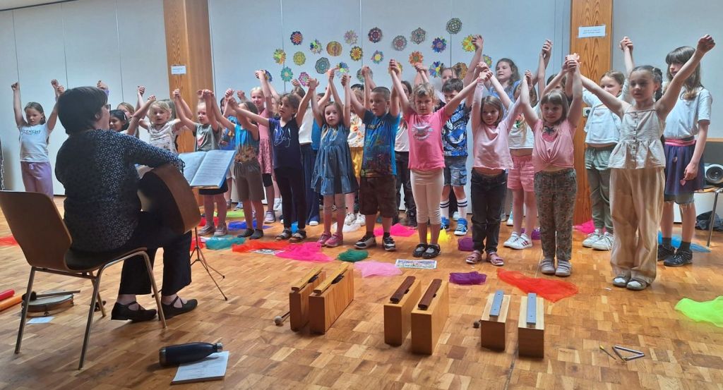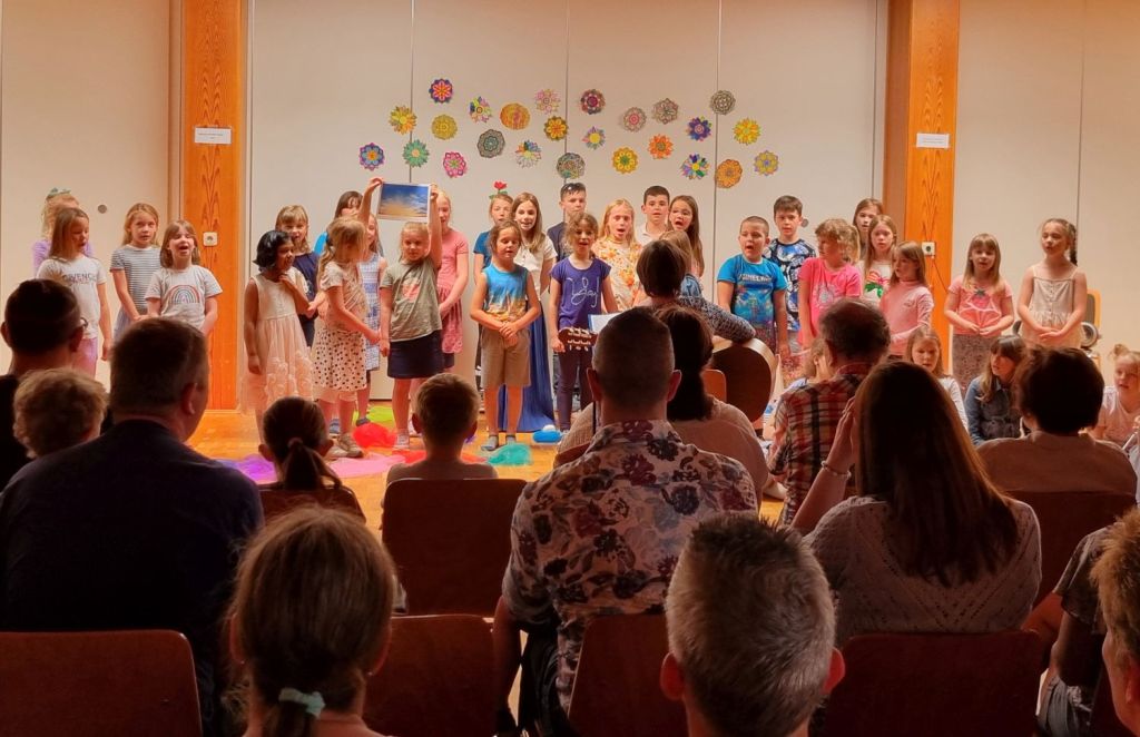 Mit großem Eifer und wunderbaren Stimmen sangen die Schülerinnen und Schüler vom Erwachen der Natur und den damit verbundenen Gefühlen. Dabei kamen sowohl neuere Songs als auch alte Volksweisen zur Aufführung. Es war beeindruckend, wie textsicher die Kinder trotz textlich umfangreicher Strophen waren.