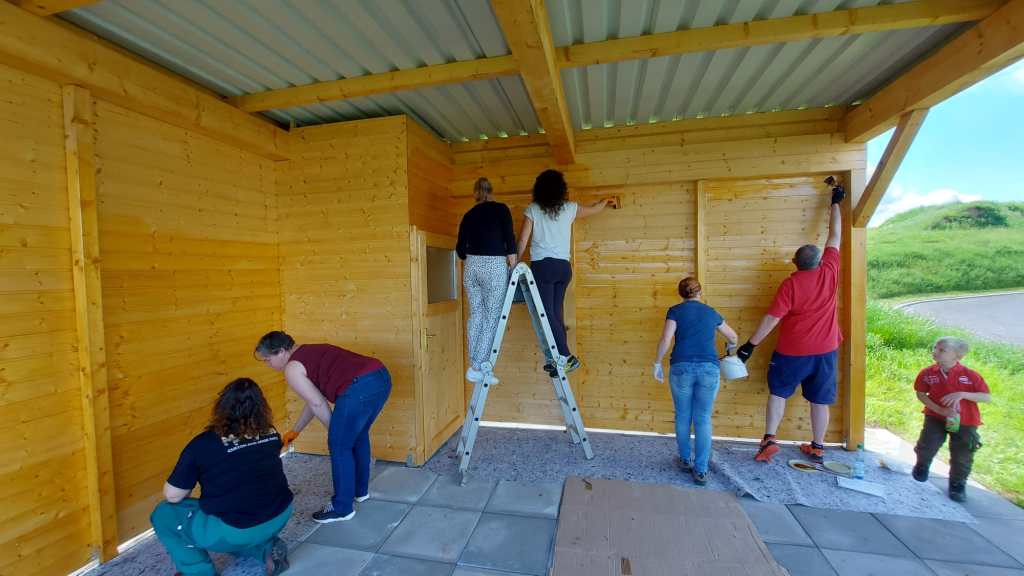 Nun kann der Pavillon jedem Wetter trotzen und seiner eigentlichen Verwendung übergeben werden. Er soll es nämlich Schulklassen und Kindergartengruppen ermöglichen, vor Ort auf der Naturwiese Beobachtungen anzustellen, Pflanzungen vorzunehmen und kleine Naturschutzprojekte umzusetzen.