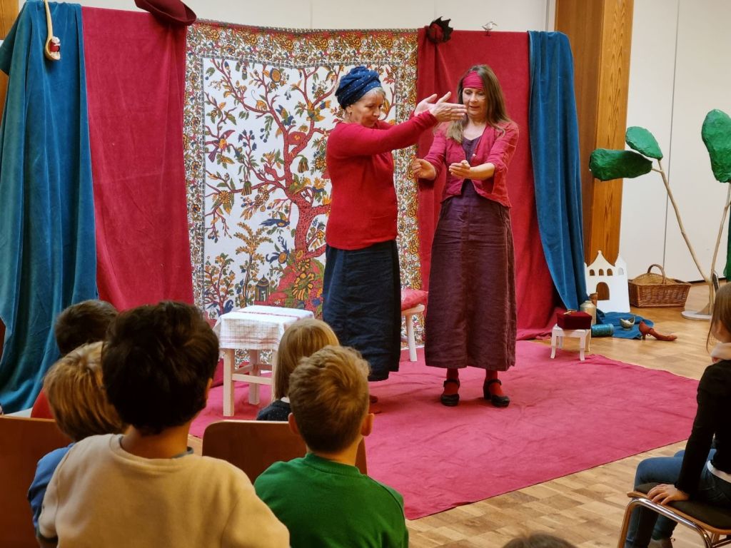 Heute hatten wir ganz besonderen Besuch bei uns an der Schule: Sabine Kolbe und Kerstin Otto vom Erzähltheater „Fabuladrama“ aus Berlin zogen mit ihren Märchenerzählungen alle Zuhörenden komplett in ihren Bann!
