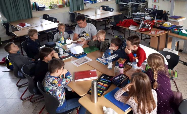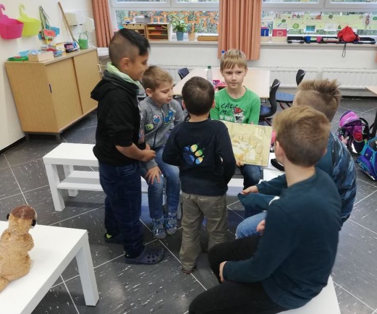 Alle Schülerinnen und Schüler der vierten Klassen hatten sich ein Bilderbuch für ihr Patenkind ausgewählt und sehr gewissenhaft den Vorlesevortrag geübt, sodass ihnen die Schulneulinge regelrecht an den Lippen hingen. Es ergaben sich vielfältige Interaktionen, zum Teil vorbereitete Quizfragen zum Buch und in jedem Fall ein reger Austausch über das Lesen! Dies alles fand in einer extrem konstruktiven und harmonischen Lernatmosphäre statt, die das Team der A-L-S dazu bewog, diese Lernpatenschaften auch in den kommenden Monaten weiter auszuweiten zu wollen. So soll Schule sein!