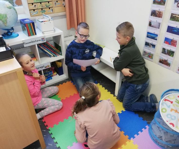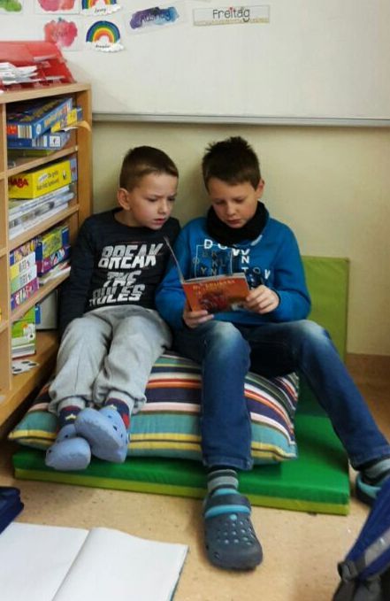Auch die beiden vierten Klassen engagierten sich am Vorlesetag in ihrer Funktion als Paten für die Erstklässler: