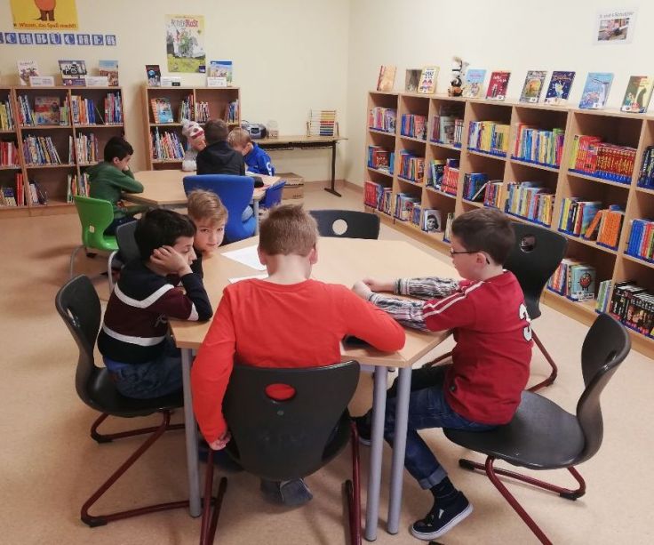 Anlässlich des Welttages des Buches unternahmen die beiden vierten Klassen einen Ausflug nach Bad Hersfeld, um in der Hoehlschen Buchhandlung ein Buchpräsent entgegenzunehmen und sich an einem Bücherquiz zu beteiligen.