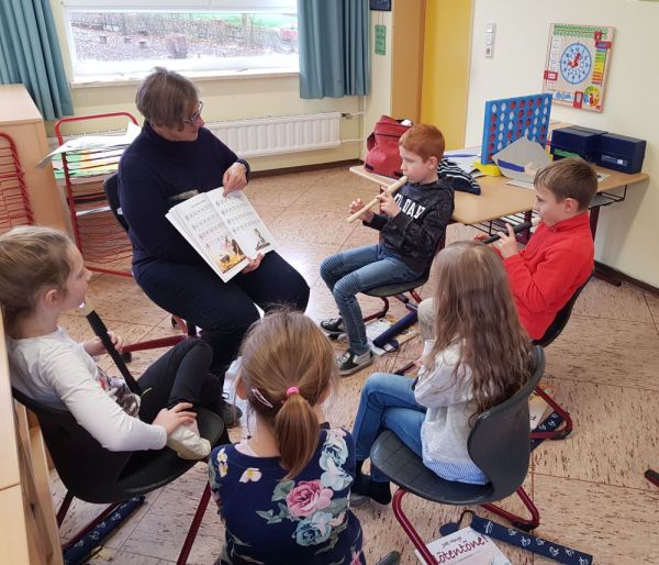 Vor einigen Wochen starteten drei (!) neue Kurse mit Flötenanfängern. Unterrichtet wird in kleinen Gruppen. Den Unterricht leitet Musikschullehrerin Bärbel May.