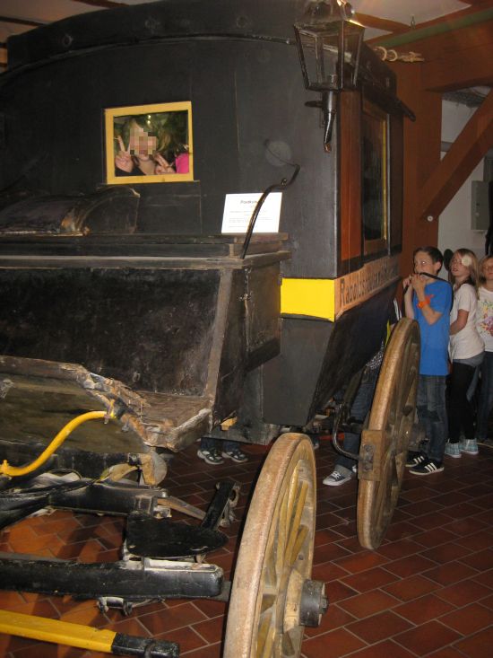 Als die Menschen noch keine Autos hatten, fuhren sie mit Kutschen. Eine Postkutsche diente dazu Post auszuteilen. In die Postkutsche passten mindestens sieben Leute hinein. Die Räder waren groß. Pferde zogen die Kutsche. Sie fuhr von Hersfeld nach Raboldshausen. Im Museum haben wir die Kutsche gesehen und durften uns sogar reinsetzen.