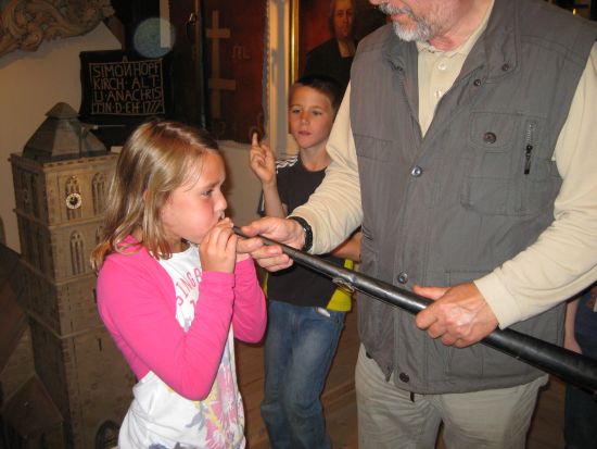 Wir durften auch mal in das Alarmrohr blasen und das war nicht einfach!
