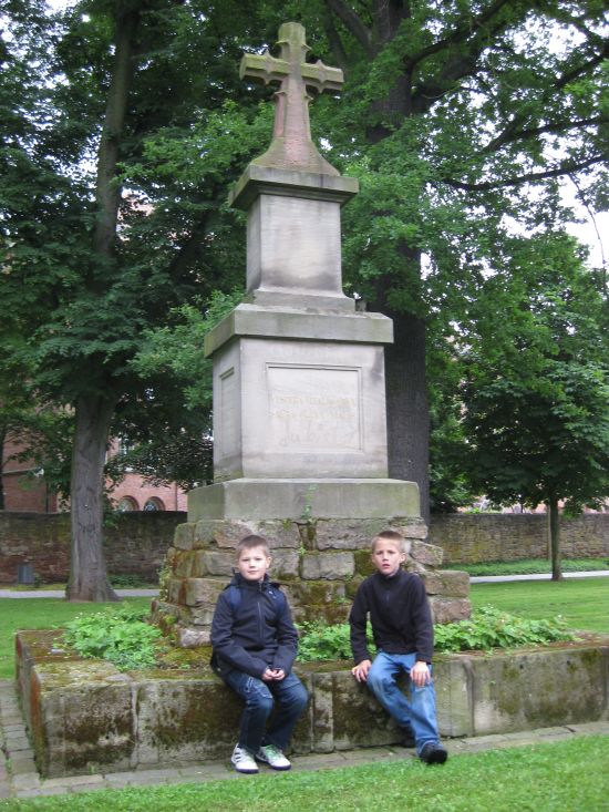 Das Vitaliskreuz zur Erinnerung an die Vitalisnacht aufgestellt. Vor der Stadtmauer steht die Nachbildung. Im Museum ist das echte Kreuz.