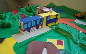 Eine Kleingruppe baute gleich eine ganze Landschaft auf, in der man bei einer Eisenbahn die Waggons mittels Magneten an- und abhängen konnte.