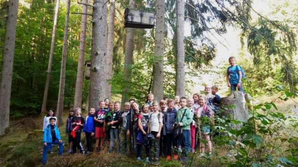 Hoch auf den Johannesberg ging es für die Zweitklässler und die dritten Klassen genossen die Aussichten auf dem Wanderweg nach Bodes.