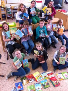 Heute haben die beiden zweiten Klassen das Finale ihres Vorlesewettbewerbs durchgeführt. In der Schülerbücherei stellten sich die sechs Endrundenteilnehmer ihrem interessierten Publikum. Gelesen wurden Ausschnitte aus verschiedenen Bänden von „‚Der kleine Drache Kokosnuss“, „Das magische Baumhaus“, sowie dem Meerschweinchen „King-Kong“.